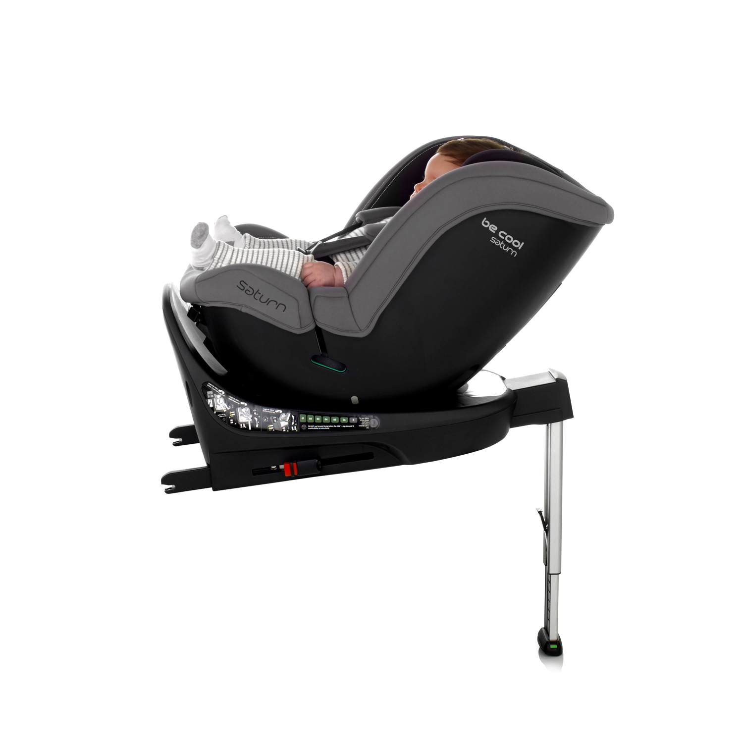 La silla de coche Saturn de Be Cool ofrece instalación ISOFIX + pata de apoyo, rotación 360°, uso desde 40 hasta 150 cm, respaldo reclinable, cabezal ajustable, tapicería transpirable lavable y un peso ligero de 11 kg aprox. Una opción evolutiva, segura y práctica para cada etapa del crecimiento del niño.